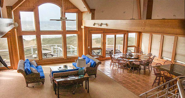 Plenty of comfortable seating to enjoy the ocean and dune views. Gather at the custom round dining table for 12 with lazy susan and 4 additional seats at the breakfast bar.